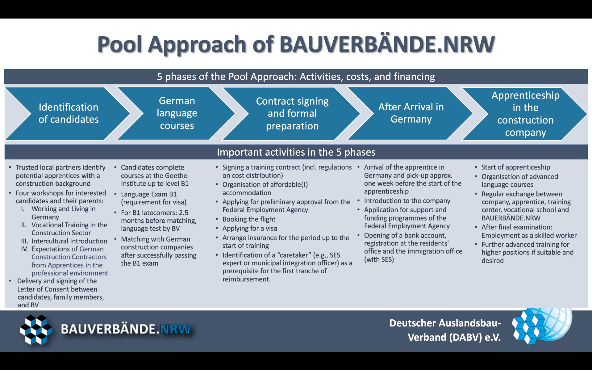 - Language training that integrates sector-specific and technical vocabulary
